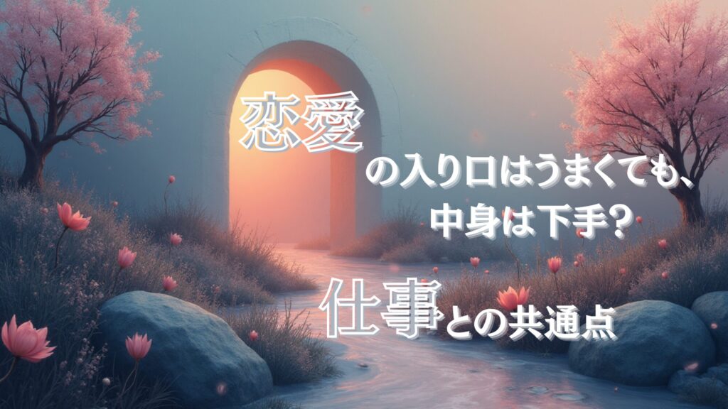 恋愛の入り口はうまくても、中身は下手…転職との共通点とは?恋も仕事も、楽しいスタートと現実のギャップにどう向き合うかが大切だと気づいた私の体験談です。仕事と恋愛の共通点について、めちゃくちゃ個人的な偏見を話します。